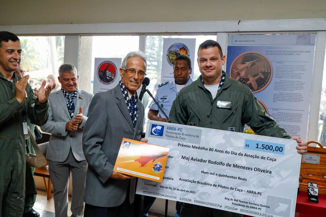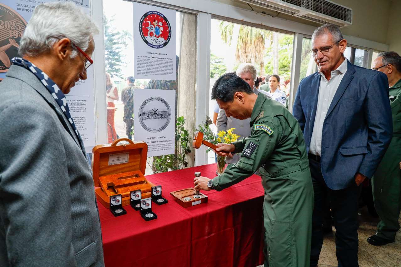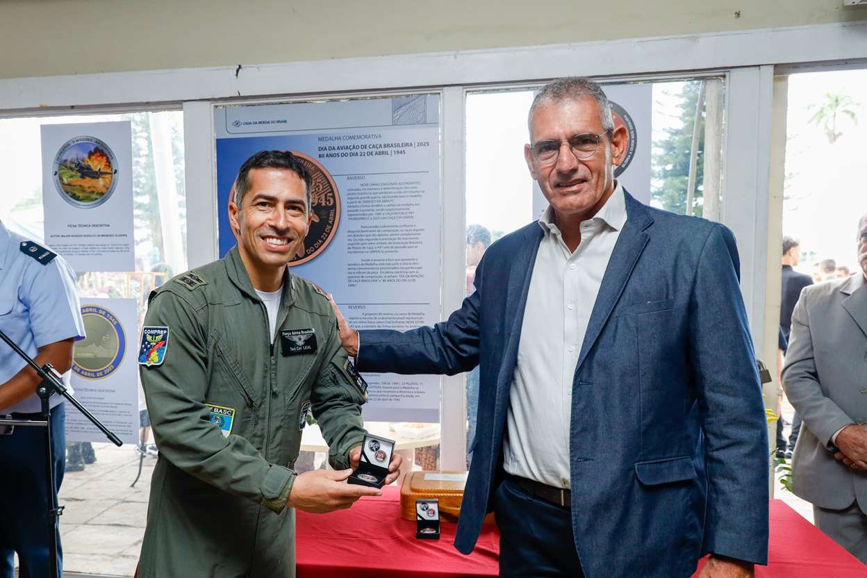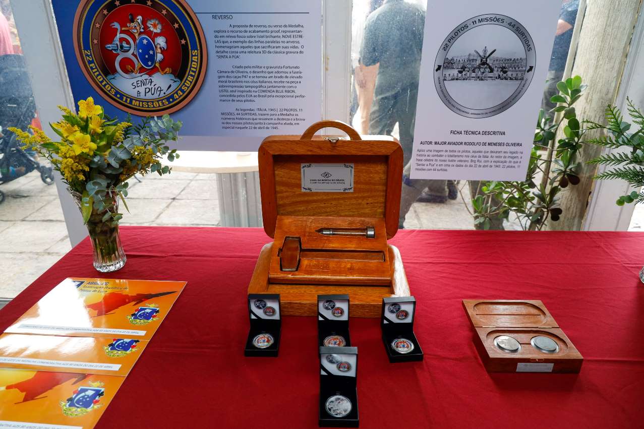 -> O lançamento de moeda comemorativa alusiva aos 80 anos do Dia da Aviação de Caça