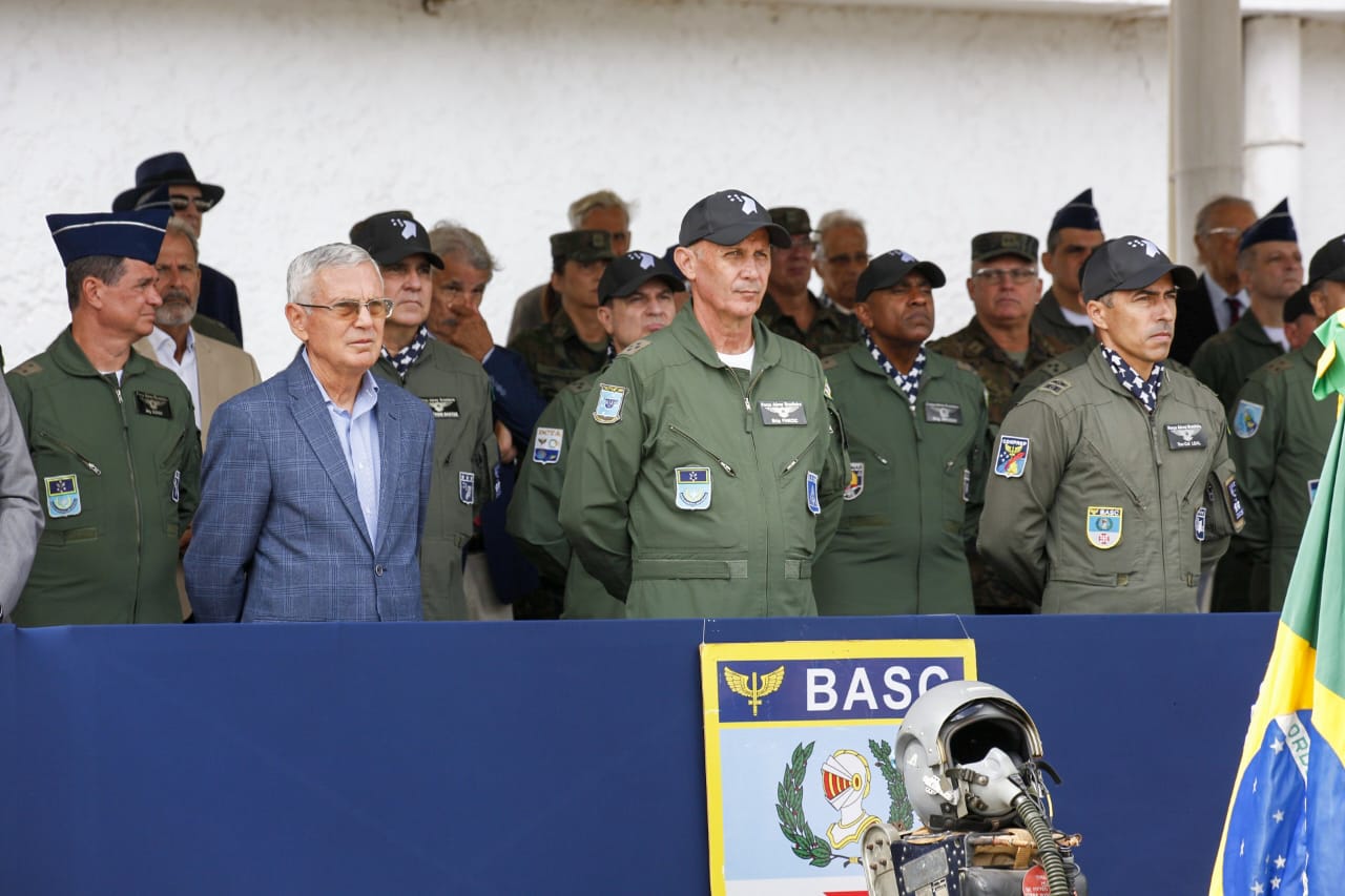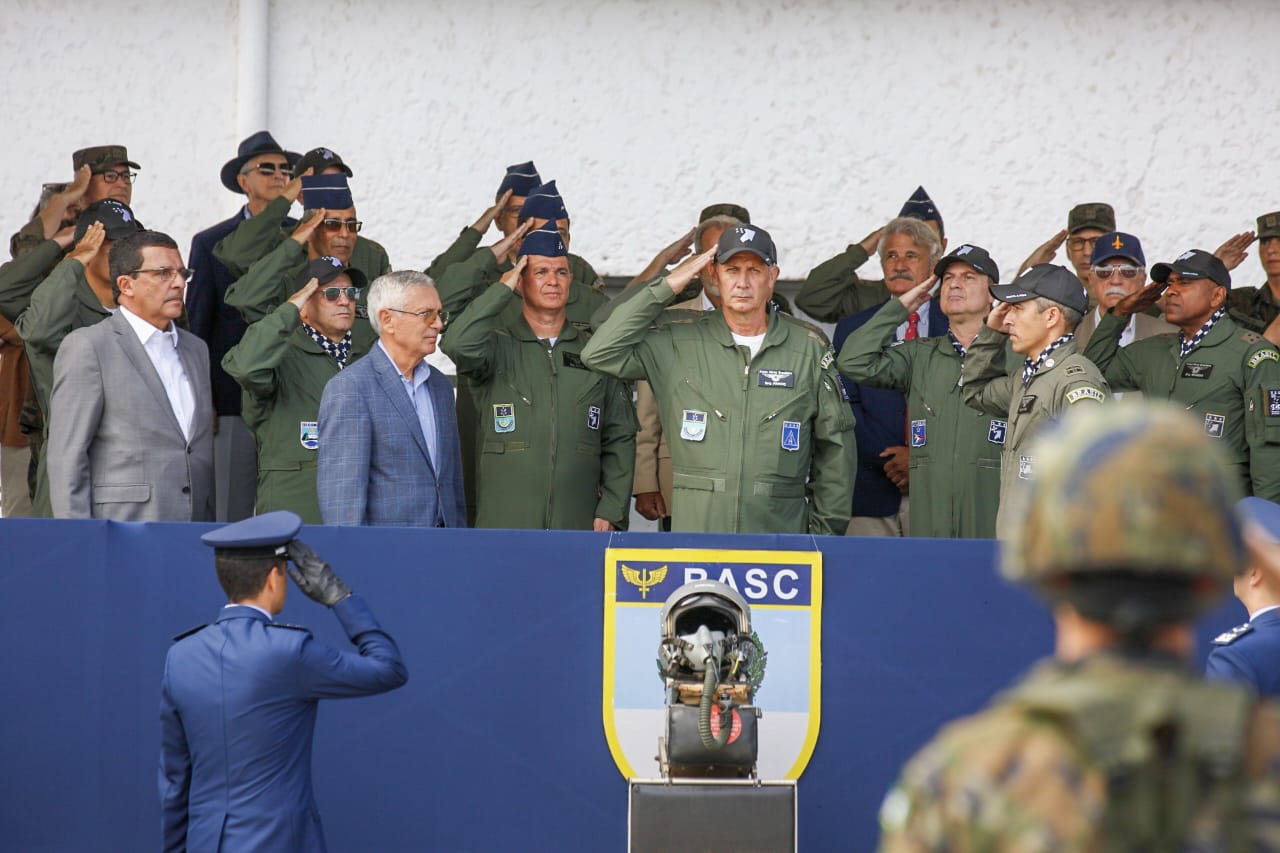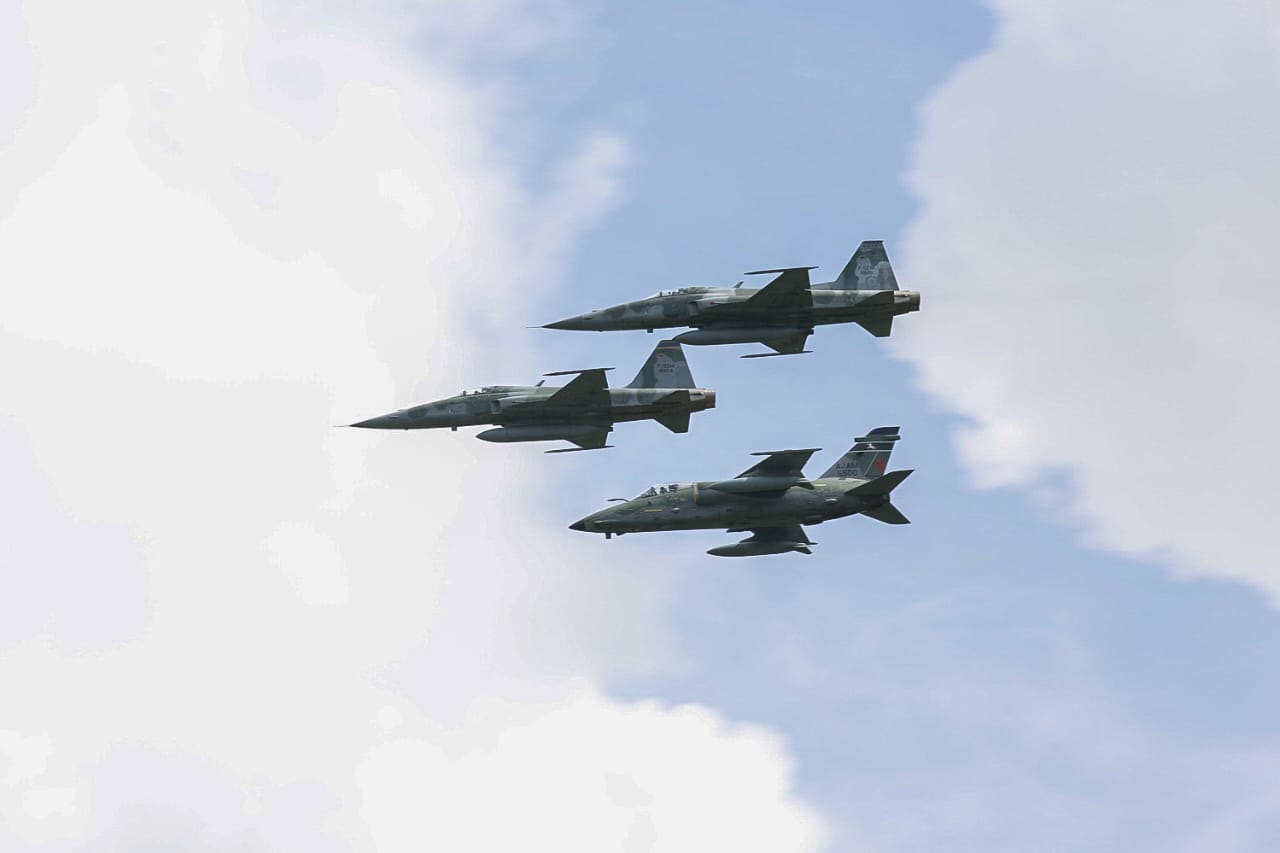 -> O sobrevoo na solenidade militar pelas aeronaves Gripen, F-5M, 1 A-1M e At-29.